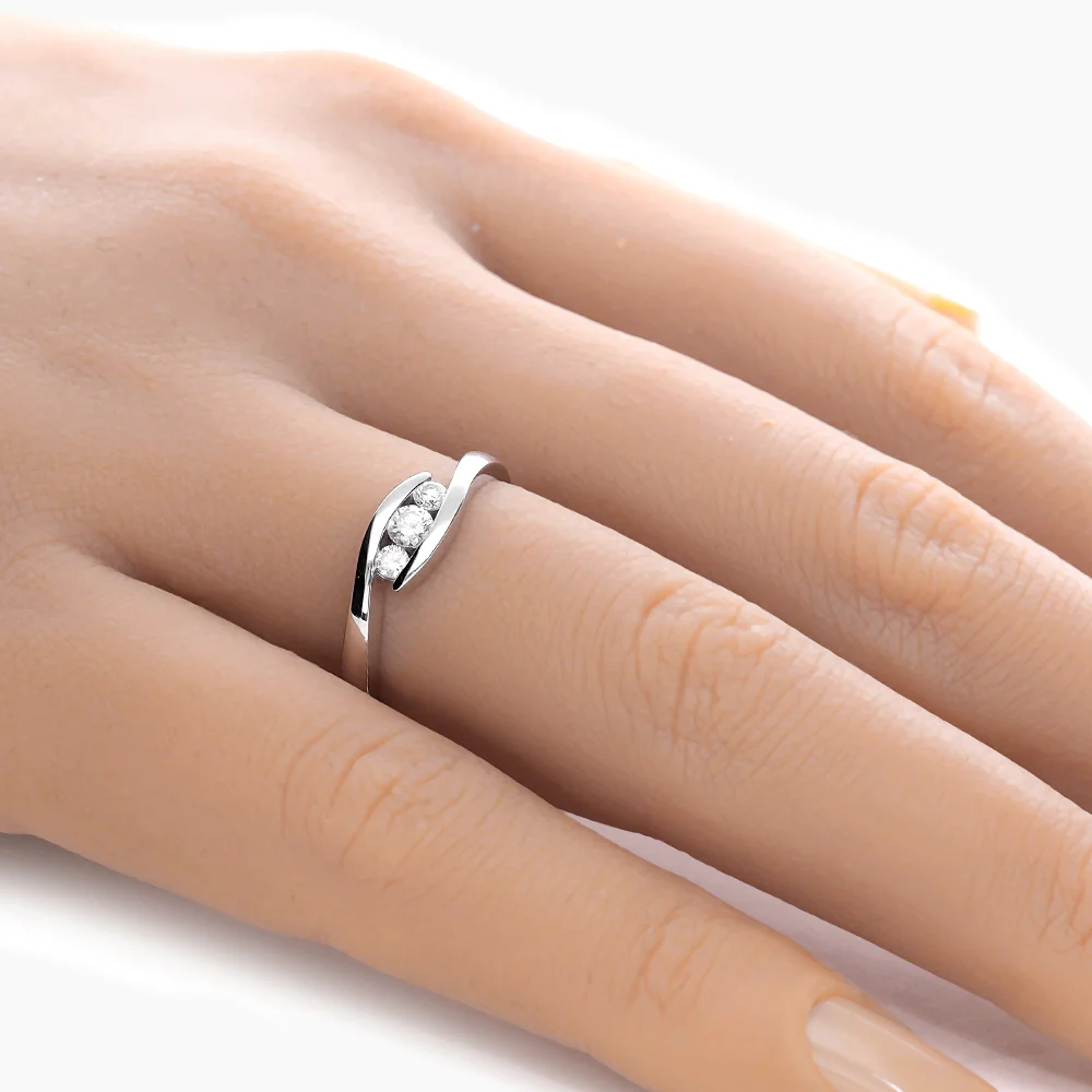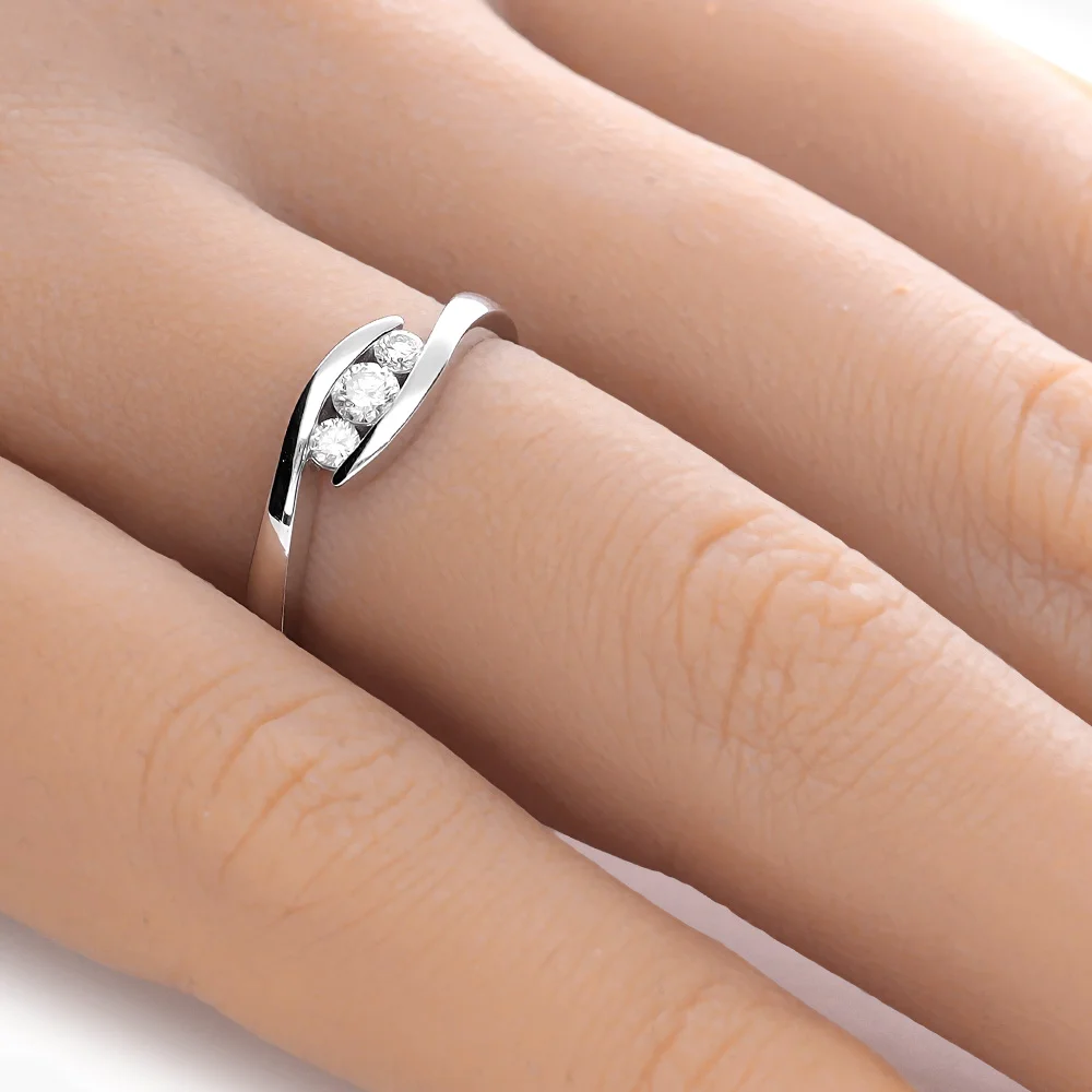 1.77 gr – 14 Ayar Beyaz Altın 0.25 Karat 3 Taş Pırlanta Yüzük