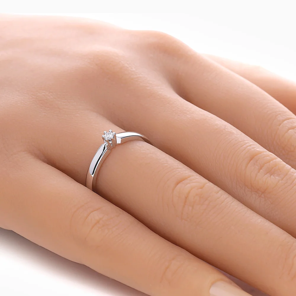 2.53 gr – 14 Ayar Beyaz Altın 0.05 Karat Tektaş Pırlanta Yüzük